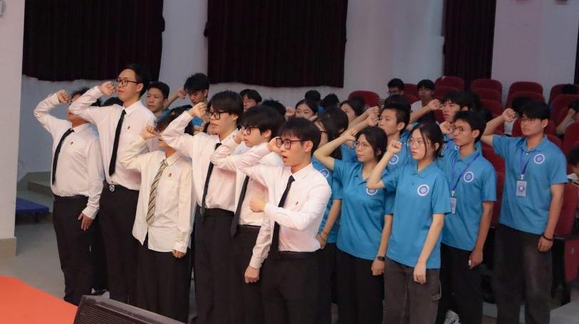 新一届学生会干部在会上进行了庄严的宣誓,承诺将无私奉献,全力践行服务同学的宗旨。