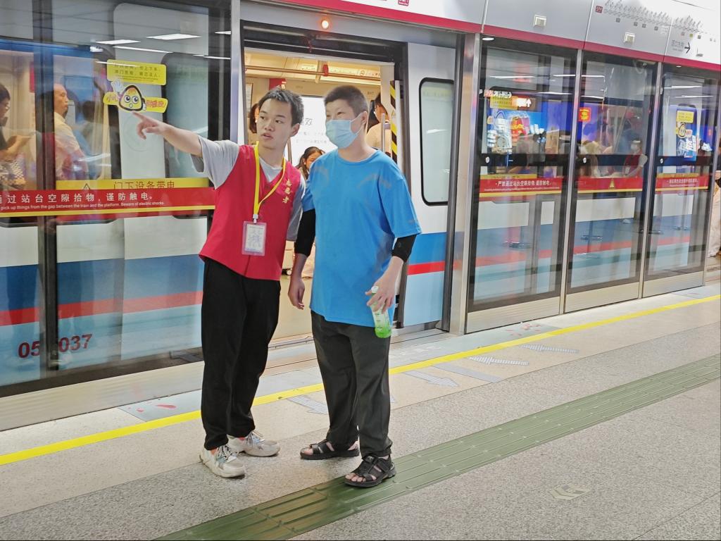 志愿者为乘客指引路线