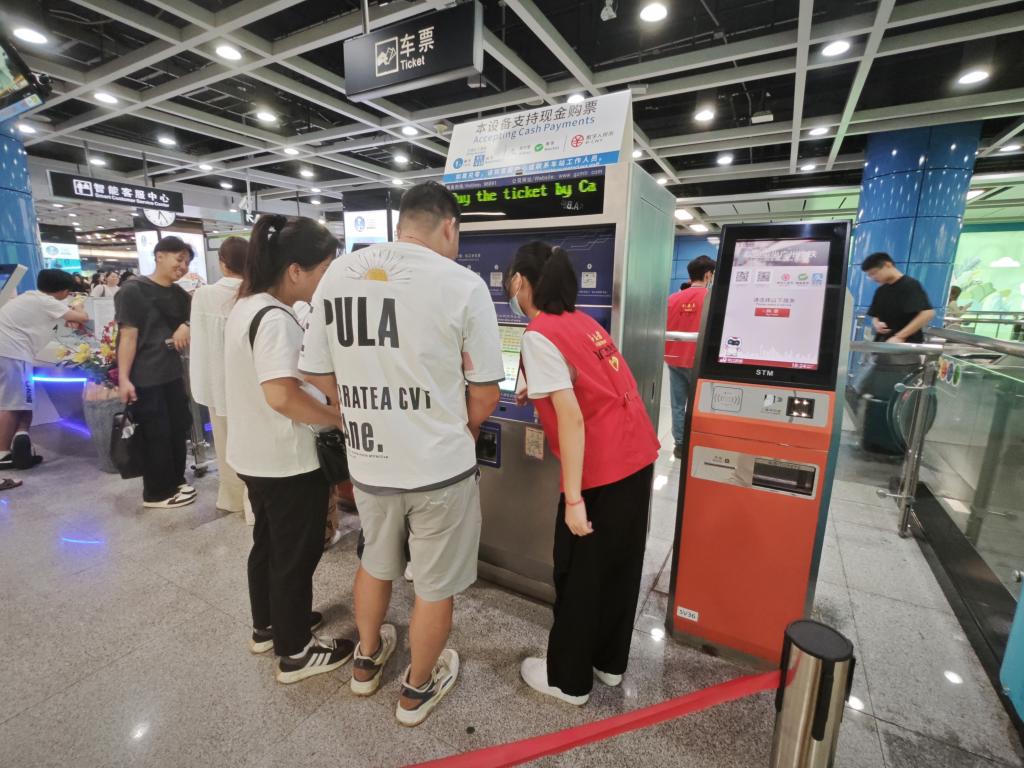 志愿者协助乘客购票