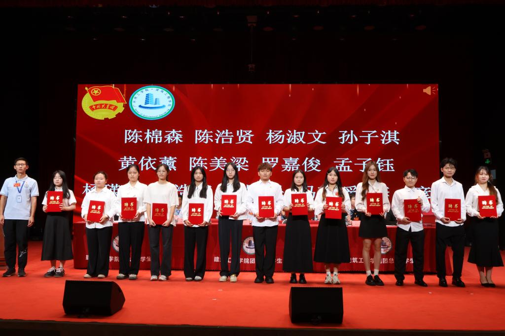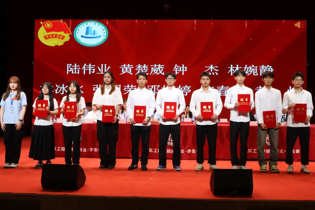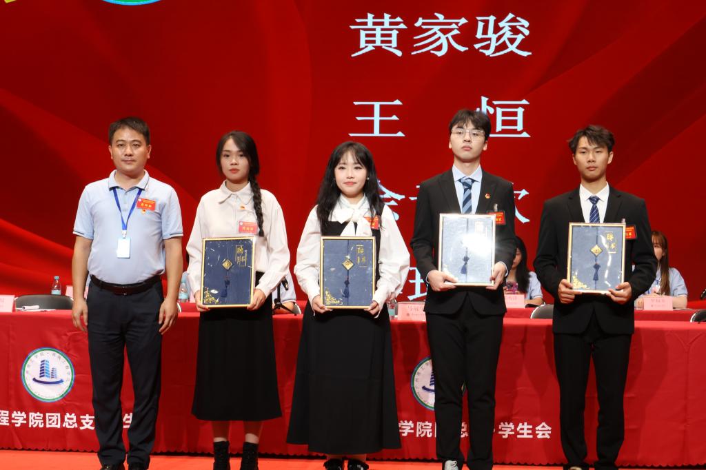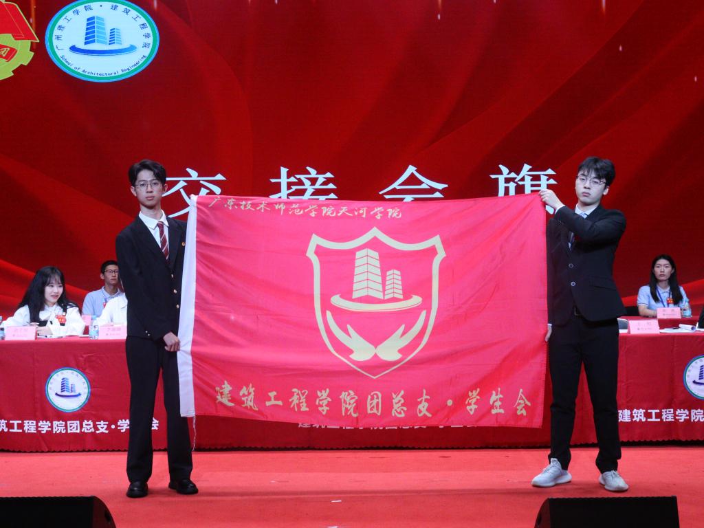 在换届大会中,马冠华书记为建筑工程学院第四届团总支、学生会副书记及主席团颁发了聘书。同时,马冠华书记等领导、老师对第四届干部颁发聘书及对新任学生干部进行授牌,各部门第四届干部为新干事授牌。新任执行主席周宏茂与上任执行主席王恒进行会旗交接仪式。