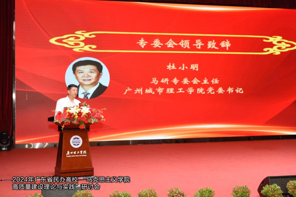 协会民办高校马克思主义研究和教学专委会主任、广州城市理工学院党委书记杜小明在会上作了讲话。他回顾了一年来广东民办高校马克思主义研究和教学专委会开展的工作,指出各校要深刻学习习近平总书记关于学校思想政治理论课的系列重要论述,全面贯彻党的教育方针,落实立德树人根本任务,坚持思政课建设与党的创新理论武装同步推进,以新时代党的创新理论为引领,不断推动思政课改革创新,培养更多让党放心、爱国奉献、担当民族复兴重任的时代新人。