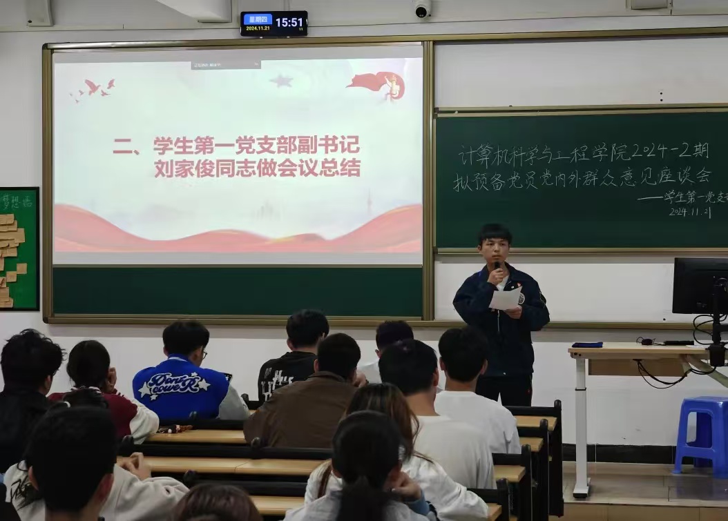 (通讯员:关颖钎)11月21日下午,计算机科学与工程学院学生第一、二、三、四、五党支部于6-203、6-214、6-215、6-216、6-314召开2024-2期拟预备党员党内外群众意见座谈会。本次会议以线上线下相结合的形式进行。学生第一、二、三、四、五党支部副书记、全体党员同志、80名拟预备党员、学生党支部工作人员按时参会。