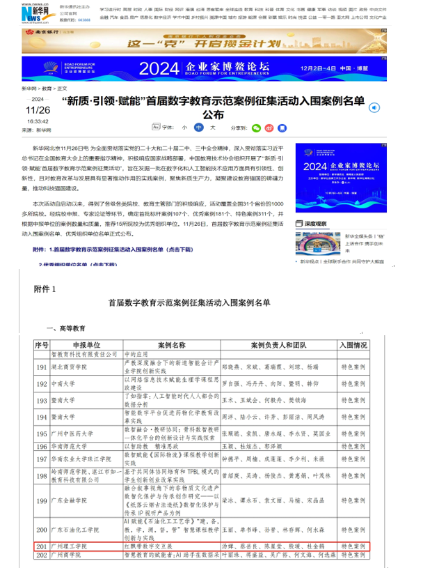 (通讯员:陈星莹)11月26日,新华网公布了“新质·引领·赋能”全国首届数字教育示范案例征集活动入围案例的通知,beat365在线唯一官网汤婵、蔡岳良、陈星莹、殷瑗、杜金鹤团队策划的《红飘带数字交互展》项目入选为“特色案例”。