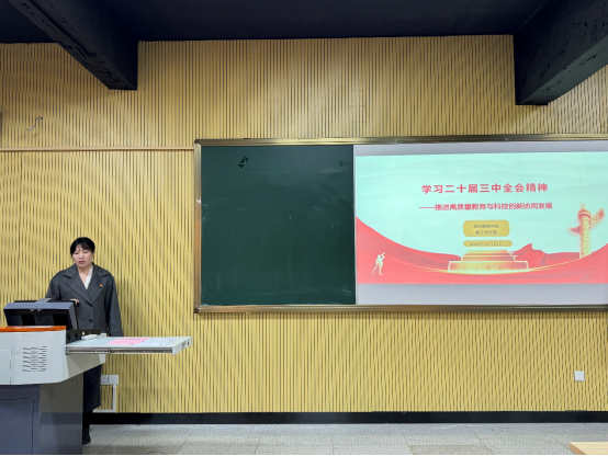 会议正式开始,教工党支部书记栾鸾同志带领全体教工党员深入学习贯彻党的二十届三中全会精神。通过对党的二十届三中全会报告的逐章解读、重点剖析,教工党员们深刻领会到党中央在当前形势下的战略部署和工作要求,纷纷表示要将党的二十届三中全会精神融入到日常工作中,以实际行动践行使命担当。