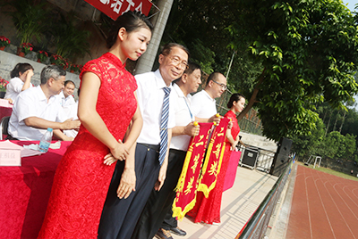 | 王玉潜校长向军训团赠送锦旗 |
