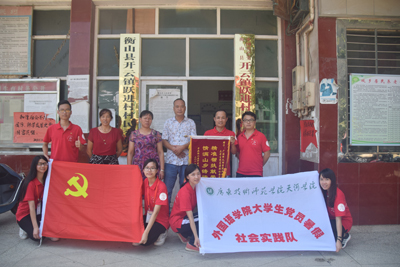 7月18日~24日,beat365外国语学院大学生党员暑期社会实践队一行7人在党总支书记谭玉清带领下,走进湖南省衡阳市衡山县跃进村,开始为期8天以“关爱留守儿童,做四讲四有合格党员”为主题的社会实践活动。