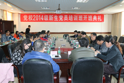 12月5日,党校2014级新生党员培训班在综合楼大会议室举行开班典礼,15名新生党员进入党校重温党的知识,党委书记胡思虎、副书记肖海、党委职能部门负责人、教学系党总支书记出席了开班仪式。