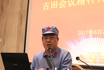 古田会议是党领导下的军队建设史上的重要里程碑,古田会议所确定的从思想上建党和从政治上建军的原则,为后来的农村包围城市、武装夺取政权道路思想的形成、发展和成功实践奠定了基础,为中国共产党领导下的人民军队的建设指明了方向,鲜明体现了党的初心。在中国人民解放军建军90周年之际,学校党委安排到古田进行党性教育专题培训,就是希望大家到这里找寻共产党的初心,更加坚定中国特色社会主义的道路自信、理论自信、制度自信和文化自信,以更加坚定的信念和昂扬的斗志投入学校"双转"工作中去。胡思虎要求参训干部要树立学员意识,遵守纪律,认真学习,积极思考,用心体悟,取得实实在在的学习培训成效并形成强大的政治思想工作合力,推动学校转型转设工程。