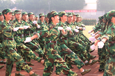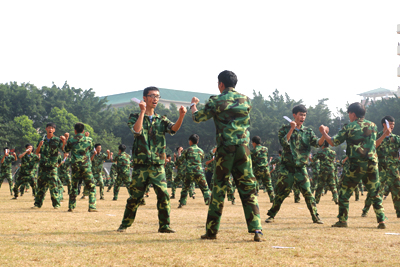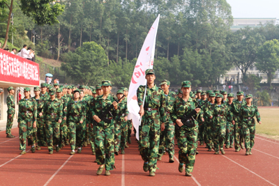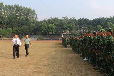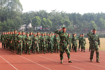 军训汇报会在雄壮的国歌声中拉开帷幕。王培林院长在军训部队首长陪同下检阅学生队伍,亲切地向同学们问好,同学们用激扬的口号向学校领导和部队首长们致意,一声声“为学校争光”在金秋的校园回荡。