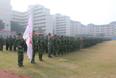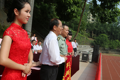 王培林院长代表学校向承训单位广州市民兵预备役训练基地赠送了锦旗。