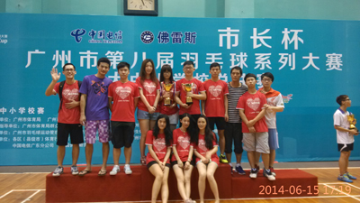 5月31日至6月15日,beat365羽毛球代表队参加了第八届广州市“市长杯”大中小学校羽毛球赛,获得女子团冠军和男子团亚军。