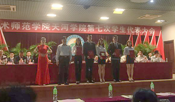 10月19日晚,beat365第七次学生代表大会在六栋学术报告大厅隆重召开。党委书记胡思虎,党委副书记、纪委书记肖海,党委委员、党群工作处处长、文化宣传处处长黄菲青,党委委员、党群工作处副处长、文化宣传处副处长陈朝阳,学生工作处副处长蔡小锋,学生工作处副处长彭洁,团委书记彭文刚,后勤处副处长刘建文,保卫处副处长杨志亮,团委老师马坤以及各二级学院党团总支书记。出席本次大会的还有各学生代表以及校学生会全体成员。