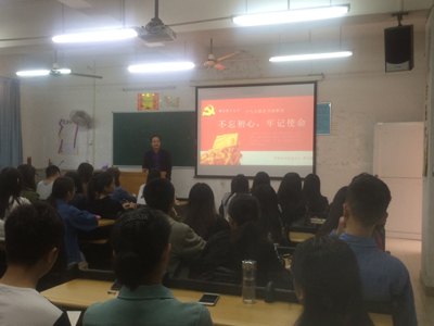 ,外国语学院在7栋教学楼315室组织召开党的十九大精神学习会,全院师生党员、入党积极分子和学生干部代表参加了会议。学习会由学院党总支书记谭玉清主持。