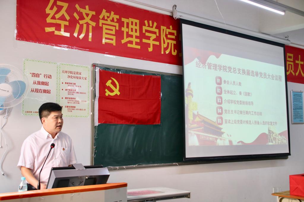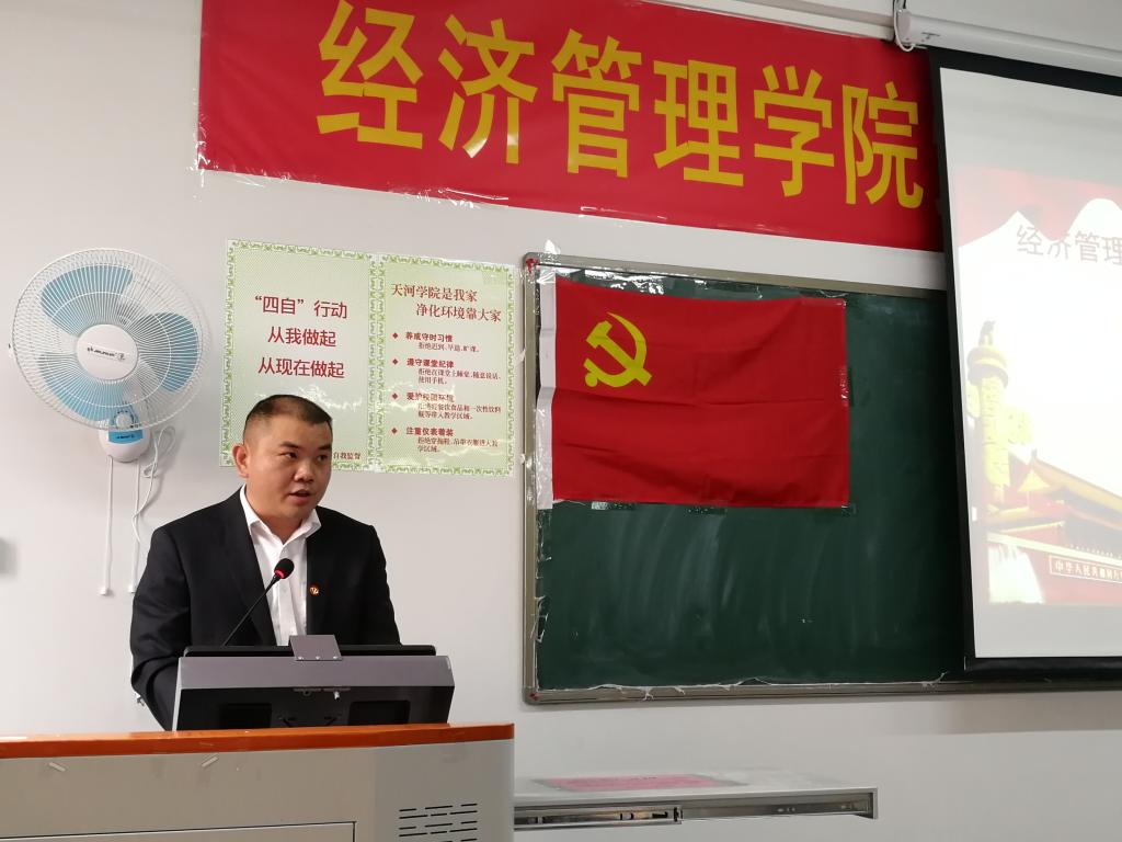 党总支书记谭飞向全体党员做了以《培养担当民族复兴大任的时代新人》为主题的工作报告。报告中,回顾总结了过去三年经济管理学院党总支的工作,并对学院党总支未来的工作提出了设想和展望。