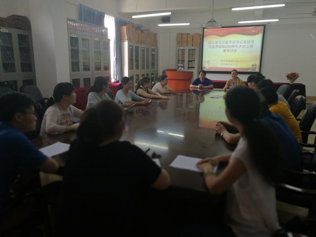 5月17日下午,艺术学院教工党支部召开会议,深入学习习近平总书记在纪念马克思诞辰200周年大会上的重要讲话,党总支副书记吕在艳主持会议。