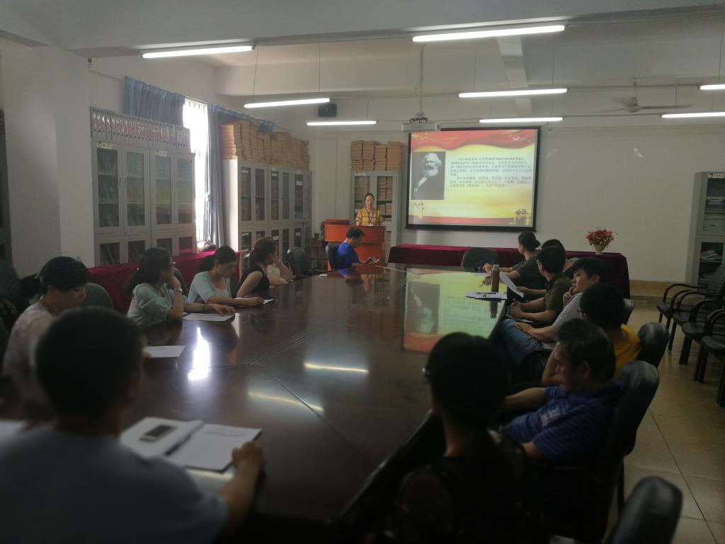 吕在艳同志指出,纪念马克思诞辰200周年大会5月4日上午在人民大会堂举行,中共中央总书记、国家主席、中央军委主席习近平发表重要讲话,深情缅怀了马克思伟大光辉的一生,深刻阐释了马克思主义的科学体系、丰富内涵及其对人类社会发展的巨大历史贡献,深入总结了我们党带领人民创造性推进马克思主义中国化的壮阔历程和丰硕成果,系统阐释了新时代中国共产党人如何学习和实践马克思主义、坚持和发展马克思主义。会议强调,党员同志们要深刻领会习总书记讲话的丰富内涵和精神实质,真正做到学懂弄通做实。要把学习讲话精神同学习习近平新时代中国特色社会主义思想和党的十九大精神结合起来,切实把讲话精神贯彻落实到学院的教学、科研和各项工作中去。