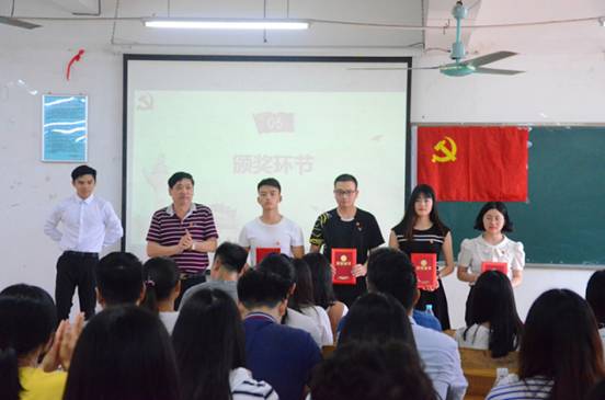 易国富同志、肖柳同志分别为获得“优秀共产党员”称号胡佳琳、江亲狮、庄彩苗、陈涛同志和获得“优秀党务工作者”称号的黎新朗、严慧娣同志进行颁奖。