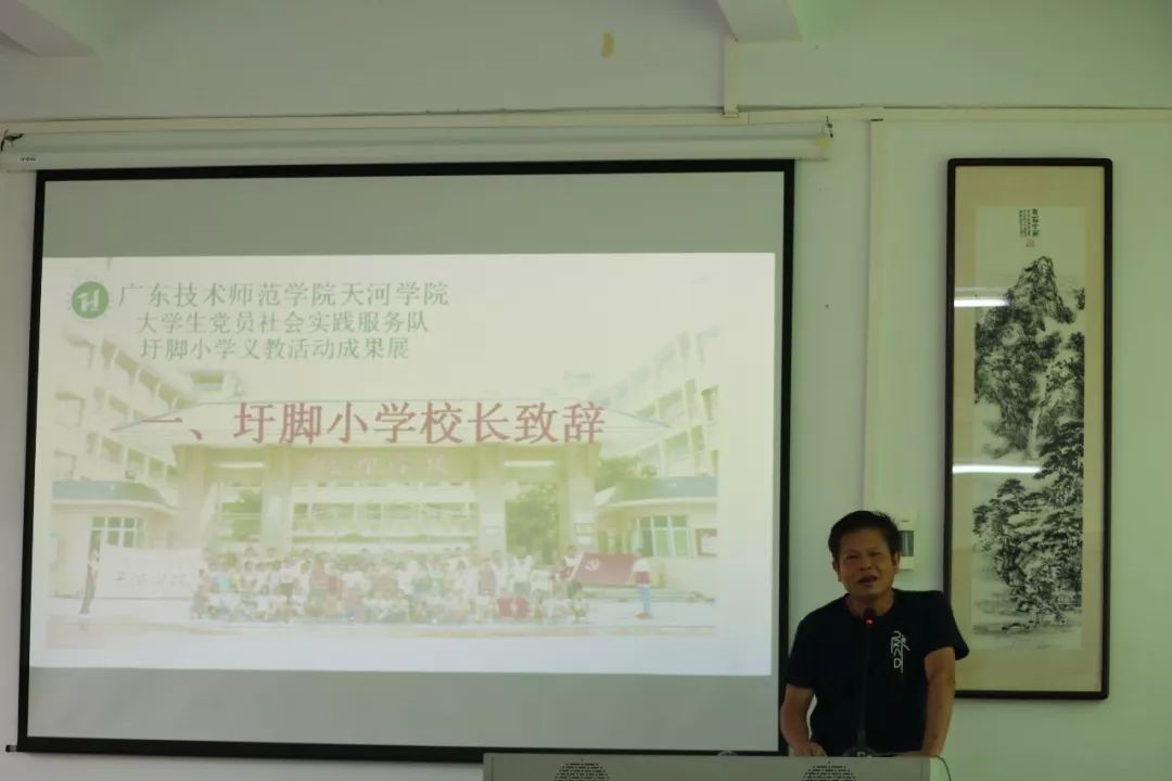 7月26日上午,青马党支部大学生党员社会实践服务队在圩脚小学举行了义教项目成果展。学校党委委员、组织部部长陈朝阳,团委书记、青马党支部书记彭文刚,圩脚小学校长郑学奋和圩脚小学部分教师应邀出席。