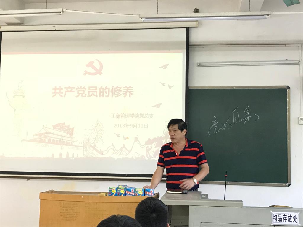 9月11日下午,为进一步加强党性修养,提高党员理论知识水平,深入学习习总书记在全国教育大会的重要讲话,工商管理学院党总支组织全体党员同志开展了以“共产党员的修养”为主题的教育活动,党总支书记易国富同志担任主讲人。