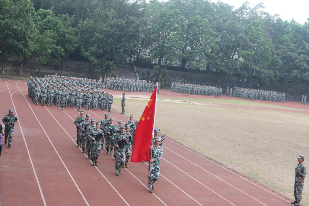 庄严的升旗仪式和嘹亮的国歌拉开大会的序幕。党委副书记、军训总指挥肖海检阅受训队伍,同学们以嘹亮的口号、严整的军容、挺拔的身姿向学校领导和部队领导致意,一声声“为学校争光”回荡在金秋的校园。检阅完毕,会操表演正式开始,各方队先后以分列式、军体拳、擒敌拳、匕首操等形式展现训练成果,队伍精神饱满,步伐一致,动作整齐,赢得了全场阵阵的掌声。