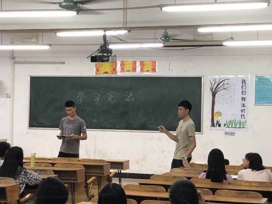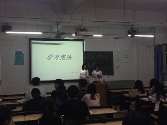 10月7日晚,工商管理学院组织各年级学生召开以“学习宪法”为主题的班会。各班班会由班长主持,他们分别从宪法是什么、宪法的主要内容及意义、公民的权利及义务、宪法日的设置等内容深入开展宪法学习。