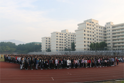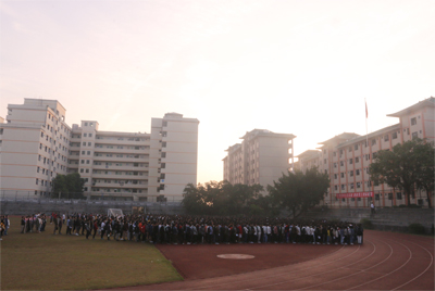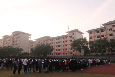 七时,迎着煦暖的初阳,师生开始整理队形,重温二个月前的军训内容。七时二十分,升旗仪式开始,师生面向国旗台,庄严地行注目礼,齐声高唱《义勇军进行曲》。