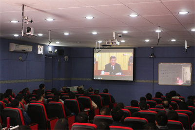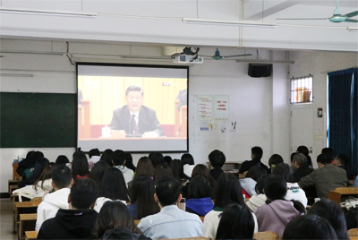 在学校主会场,党委书记黄圣诚、副校长胡思虎、党委副书记肖海、校长助理陈武耕等学校党政领导与两委委员、党委理论中心组成员、思政课教师、全体辅导员、师生党员和团员代表一同收看庆祝改革开放40周年大会直播。在各二级学院分会场,没有教学任务的教师和学生利用会议室、办公室、多媒体教室观看直播,通过多媒体、手机观看直播、听广播等形式纷纷关注改革开放40周年大会的实况转播和相关报道,共同聆听中共中央总书记、国家主席、中央军委主席习近平发表的重要讲话。