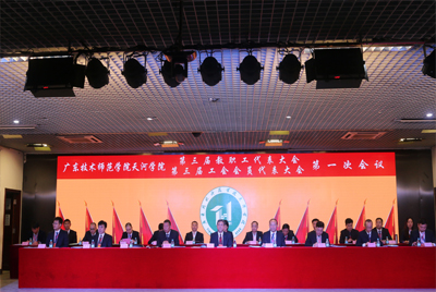 1月4日至1月5日,广东技术师范学院天河学院第三届教职工代表大会暨第三届工会会员代表大会在学术报告厅召开。学校董、政、党领导班子和正式代表、列席代表欢聚一堂,全面盘点过去五年的工作成就,系统总结事业发展的成功经验,选举产生新一届教代会执委会和工会委员会,科学谋划未来一段时期改革开放再出发的事业蓝图。