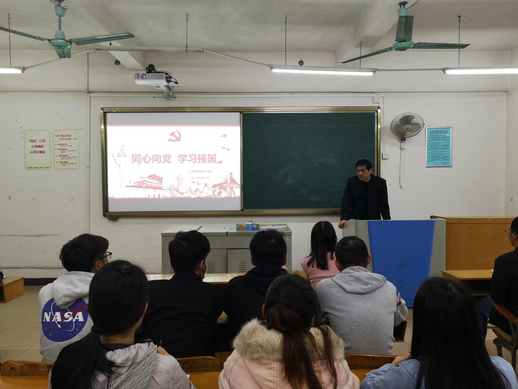 2月28日下午,工商管理学院党总支在6栋303B教室召开了“同心向党,学习强国”主题座谈会.学院全体在校学生党员参加了本次座谈会。