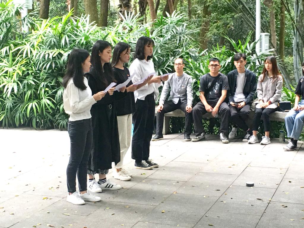学习活动以主题朗诵的形式开展,在一首《月牙之死及飞天》的背景音乐下,由杨漫丽、杨颖、林凤梅、林淑贞四名学生以“缅怀杰出校友,传承优秀精神”为主题讲述了陈文金同志的先进事迹:“他虽有公务员事业干部的光环/却在广阔的田野里成长/敬业奉献、牢记使命、对党忠诚/是他一生的信念/心系群众、大公无私、扎根基层/是他无悔的选择……”短短的朗诵,道出了优秀校友陈文金艰苦朴素、淡泊名利的高尚情操。正如陈文金在一次工作总结中写道:“在乡镇基层,很多时候,群众可能不认可某个理论,但他们可能因为你这个人而在这些问题上作出一定让步,这是感情的力量,有血有肉的心灵沟通”。