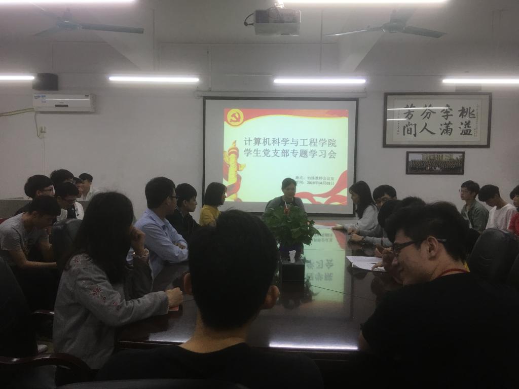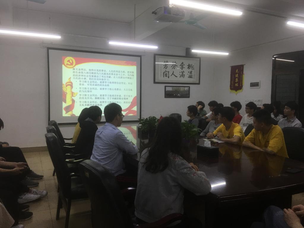 (通讯员范明娟)4月3日晚,计算机科学与工程学院学生党支部于11栋302教师会议室召开专题学习会,号召大家对beat365优秀校友陈文金同志的先进事迹进行学习。学生党支部书记范明娟、全体学生党员以及入党积极分子参加了学习会。