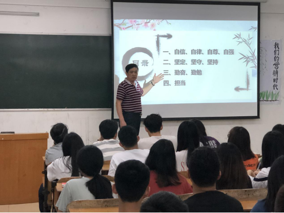 课上,易书记传达了提高大学生综合素质的重要方针政策,并从“四自、三坚、二勤、一担当”的四个重要层面诠释了大学生应如何自生活、学习等方面提高自身思想道德,担负起当代大学生的历史使命和责任。