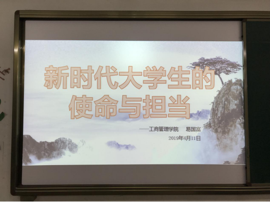 4月11日晚,为提高大学生思想道德与素质教养,引导学生建立正确的世界观、价值观、人生观,工商管理学院于6栋316开展了主题为“新时代大学生的使命与当担”的书记第一课,学院在校党员及学生干部代表参加了此次思政课,党总支书记易国富主讲。