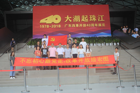 “大潮起珠江——广东改革开放40周年展览”布展在深圳改革开放展览馆内,分为“序厅”“敢为人先勇立潮头(1978—1992)”“增创优势砥砺前行(1992—2012)”“走在前列当好窗口(2012—2018)”“尾厅”五个部分,运用照片、实物、视频、模型、雕塑和高科技手段、互动体验项目,全面、生动、立体地展示了广东改革开放40周年的壮阔历程和辉煌成就,展示了广东坚持改革不停顿、开放不止步,奋力实现“四个走在全国前列”、当好“两个重要窗口”的生动实践。参观完展览后,师生代表纷纷表示,展厅内容十分震撼,让人倍感振奋,对学习习近平总书记视察广东重要讲话精神有了更具体、更深刻的感悟,深刻感受到了改革开放40年来人民群众生活中发生的伟大变迁,以及日益增加的幸福感和获得感。