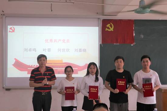 易国富书记、黄浩书记分别为获得“优秀党务工作者”称号的严浩聪、钟卓玲、叶常青同志和获得“优秀共产党员”称号的刘卓鸣、叶蓉、何世欣、刘嘉晓同志进行颁奖。