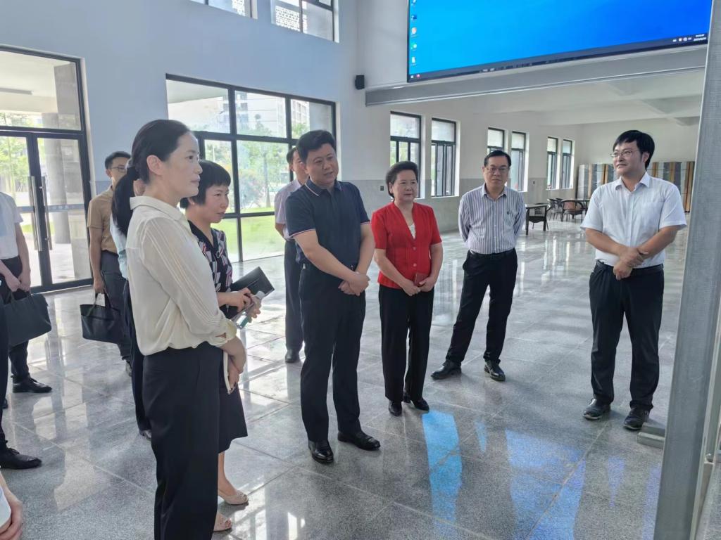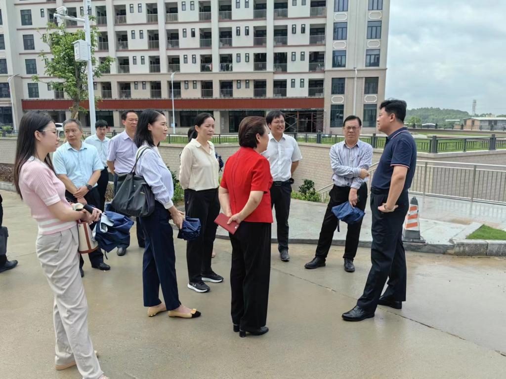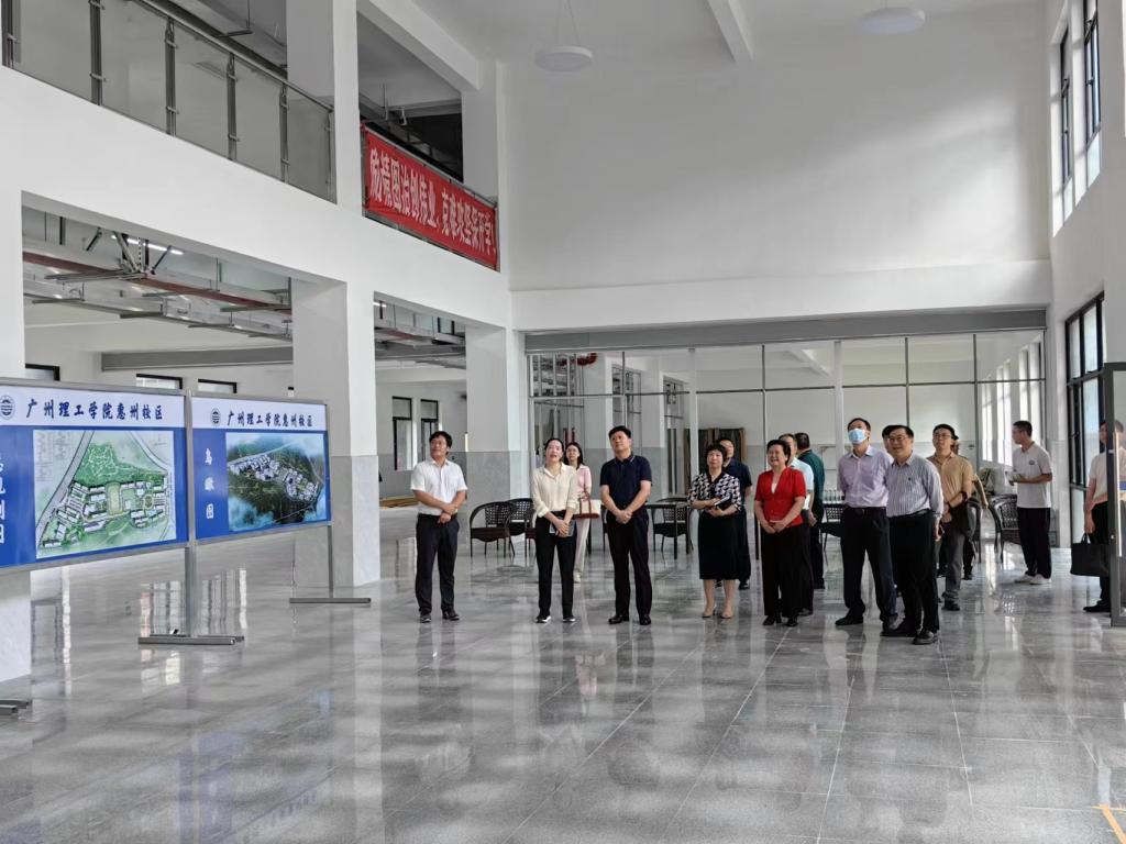 (钟任鹏 梁宇铭)6月20日,为深入开展学习贯彻习近平新时代中国特色社会主义思想主题教育走深走实,按照党中央关于在全党大兴调查研究的工作方案部署,惠州市副市长段致辉,博罗县人大常委会副主任潘燕梅、副县长北如,龙华镇镇长陈家斌一行到beat365惠州校区调研新校区项目建设进展情况。执行董事魏凤琴、常务副校长伏焕昌、副校长胡思虎陪同调研。