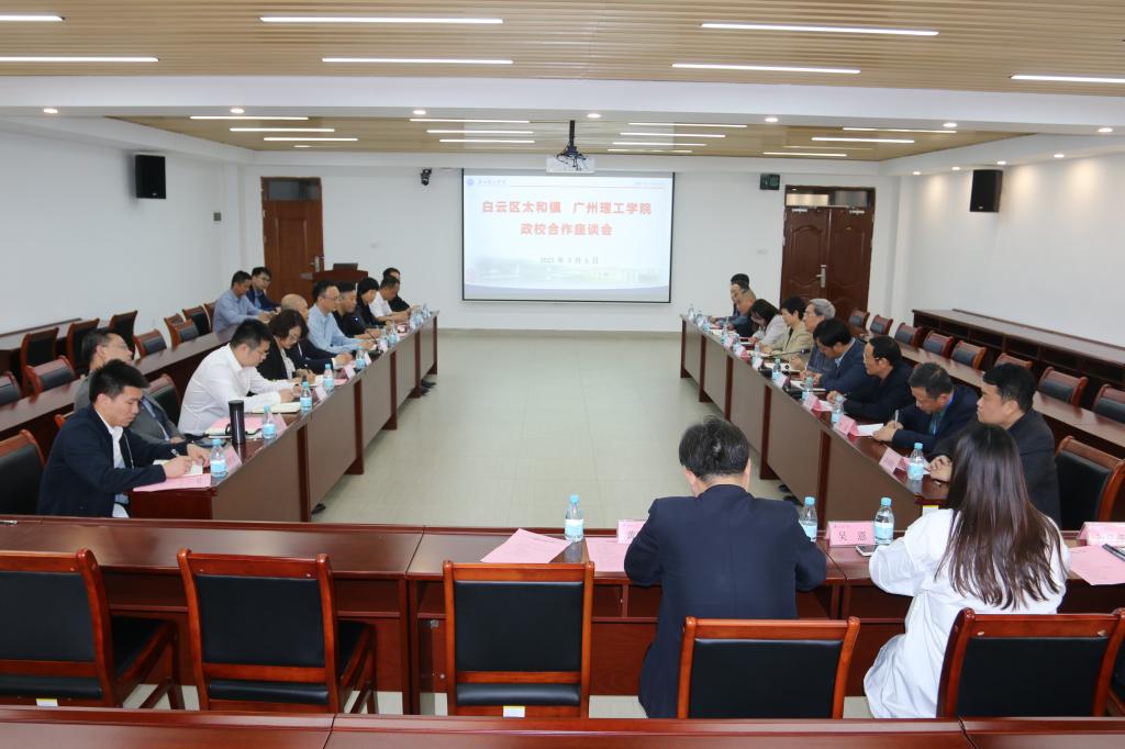 (黄菲青)3月6日,白云区太和镇党委书记濮祺国和党委副书记、镇长郑伟居一行进校,和校长胡社军等党政领导围绕政校合作、人才队伍建设、产学研合作等工作进行深入的座谈交流。