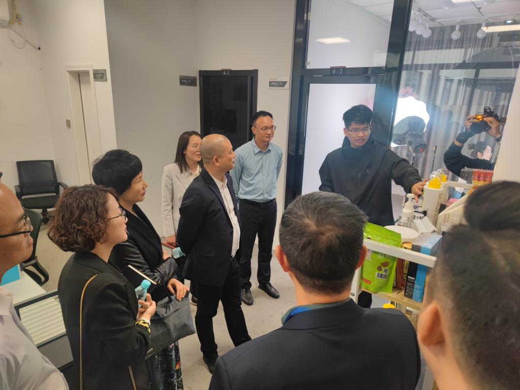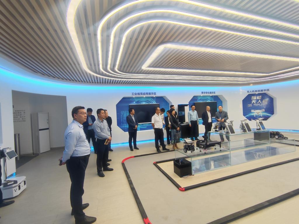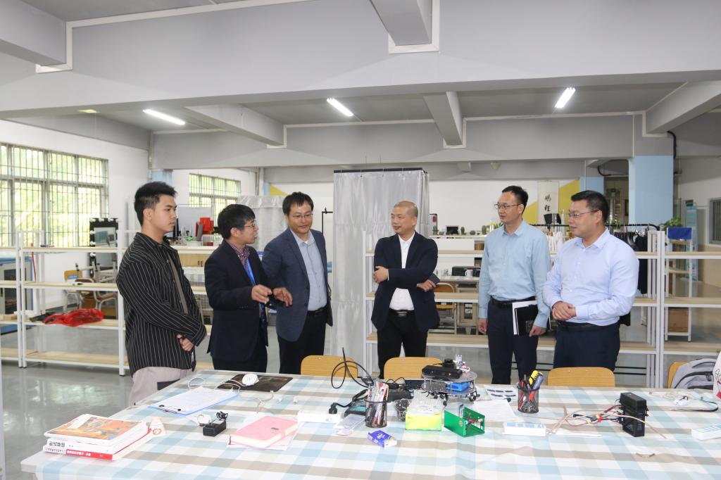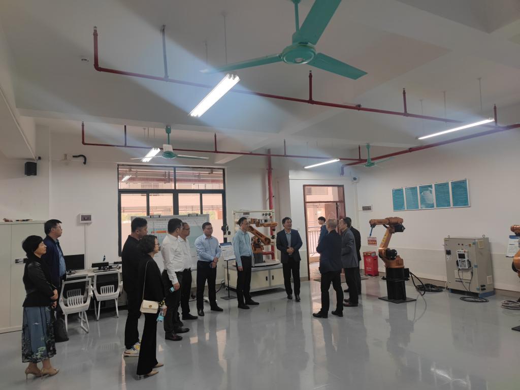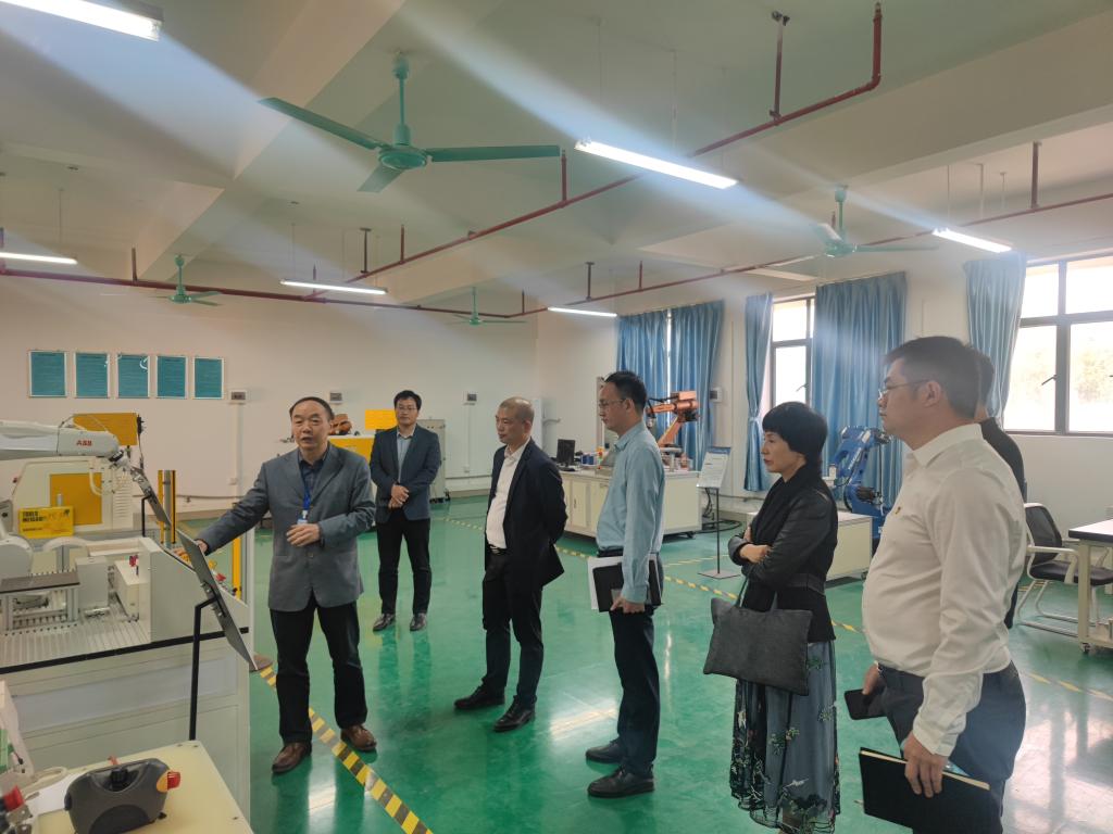 在常务副校长伏焕昌的陪同下,濮祺国一行参观了双创学院和帽峰创谷,调研学生学科竞赛、创新创业、团队孵化等工作进展,随后参观了省工业机器人集成与应用工程技术研究中心的机器人创新、机器人仿真与离线编程、BIM+VR虚拟仿真、PLC.仿真等多个实验室和校园直播基地。