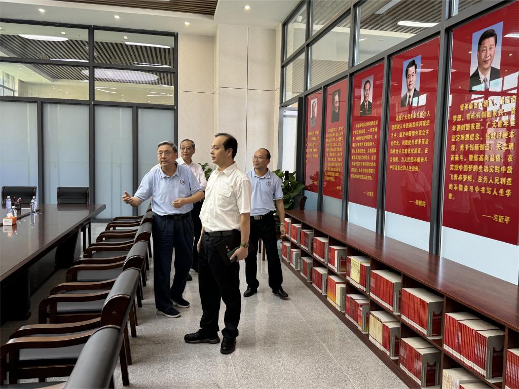 韩维斌副秘书长还现场走访了校区教学楼、实验室、图书馆、党建活动室、学生活动中心、体育运动场、学生饭堂等地。