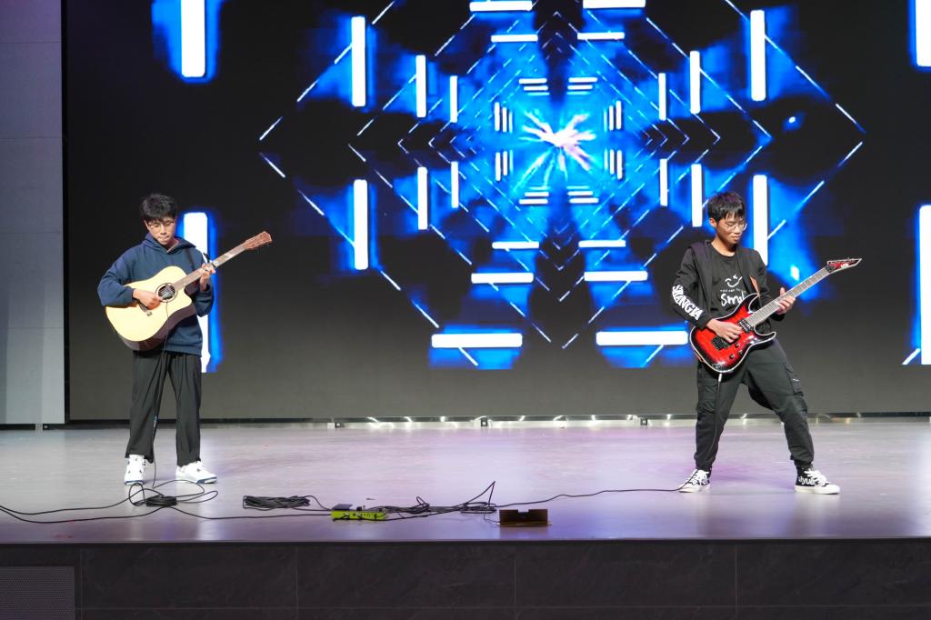 晚会在斗志昂扬催人奋进的舞狮《智取毒蛇夺奇宝》中拉开帷幕,狮舞翩翩,展现中华风采,舞狮起舞,感受中国力量!联唱《歌曲串烧》,动人的旋律踏着音符而来,美妙的歌声萦绕耳畔,余音绕梁;诗词朗诵《将进酒》,且饮手中杯,莫忧身后事,李白的豪放浪漫令人神往;舞蹈《寄明月》,一曲明月寄相思,双目难掩归家诗。时光走过千年,明月寄托思念;《西游记》承载了无数人的童年回忆。摇滚式的演绎别有一番风味,吉他演奏《西游记》让大家感受了这段熟悉的旋律;南拳北腿,武术表演《南拳》中国功夫的博大精深;戏剧表演《英语戏剧》让大家感受万物有灵,生生不息,大千世界,美美与共,万物并育而不相害,道并行而不相悖,携手并进,与自然和谐共生;现场配音《广理配音秀》、舞蹈《Dancing all night》等依次上演。动人的歌声、精彩的舞蹈、激情四溢的乐曲,将观众带入了一个充满音乐和欢乐的世界。同学们在舞台上精彩表演,以悦耳的旋律和优美的舞姿,展现出新时代大学生应有的积极向上、热爱生活的精神风貌。今年元旦晚会节目涵盖舞狮、联唱、朗诵、舞蹈、戏剧、配音秀、武术表演等多个艺术领域,大批学生积极参演,营造了浓厚的校园文化氛围,推动了校园音乐文化的传承与发展。