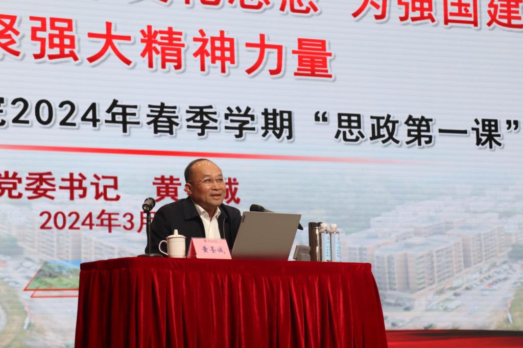 (梁宇铭)3月21日下午,为深入学习贯彻党的二十大精神和习近平文化思想,贯彻落实省委“1310”具体部署,勇担新的文化使命,不断增强思想政治教育工作针对性、实效性,扎实推动全省宣传思想文化工作和学校事业高质量发展,学校党委书记黄圣诚在惠州校区大礼堂讲授春季学期“思政第一课”。