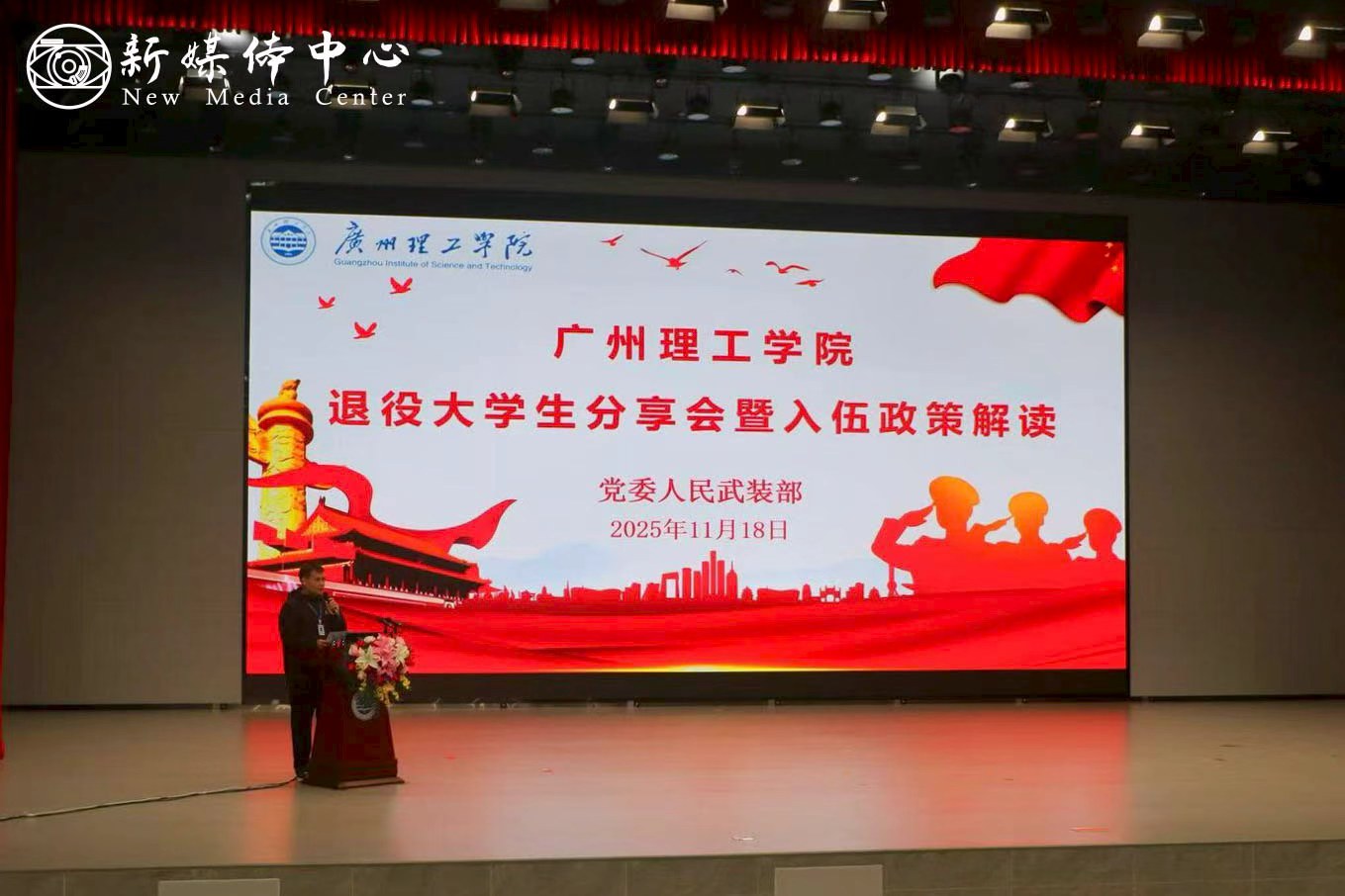 为弘扬爱国主义精神,鼓励青年学子投身国防事业,帮助学生全面了解入伍政策。2025年11月18日,党委人民武装部组织惠州博罗校区全体学生参加退役大学生分享会暨入伍政策解读专题讲座。学校副校长肖海、党委人民武装部部长许就平、惠州博罗校区管委会主任钟任鹏出席本次讲座。